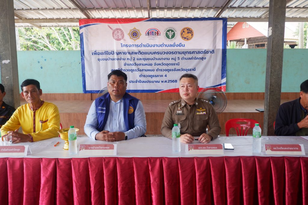 เข้าร่วมพิธีเปิดโครงการดำเนินงานตำบลยั่งยืนเพื่อแก้ไขปัญหายาเสพติดแบบครบวงจรตามยุทธศาสตร์ชาติ ตำรวจภูธรภาค 4 ประจำปีงบประมาณ 2568 ของ สภ.วังสามหมอ ภ.จว.อุดรธานี ณ ศาลาประชาคมบ้านดงง่าม ต.คำโคกสูง อ.วังสามหมอ จ.อุดรธานี
