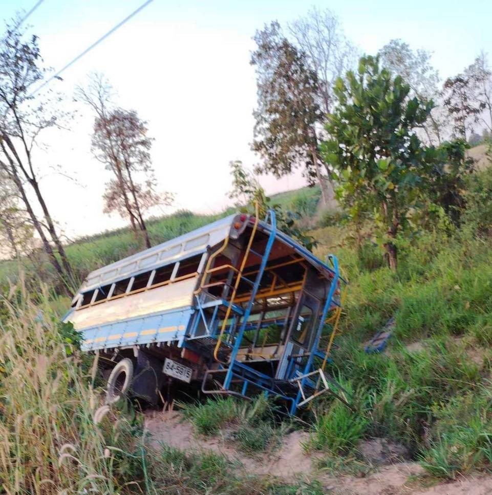 เกิดเหตุรถรับส่งนักเรียน ประสบอุบัติเหตุเสียหลักลงข้างทาง